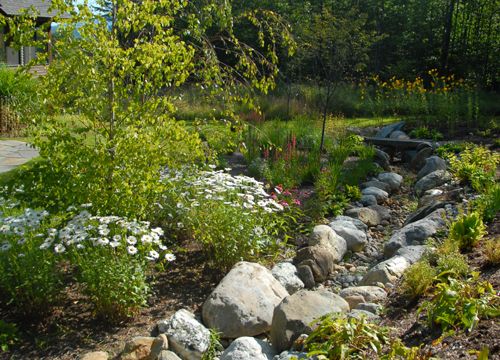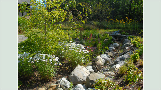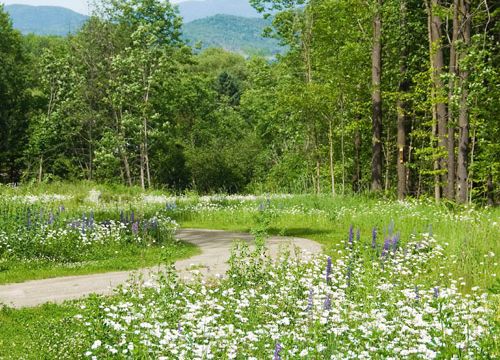 Our clients had just begun building a hillside home in Richmond overlooking the Green Mountains when they called us in to design their landscape. The challenge was to integrate the new home into its hillside environment while creating beautiful perennial gardens and natural meadows and enhancing spectacular views.