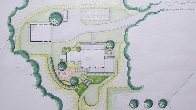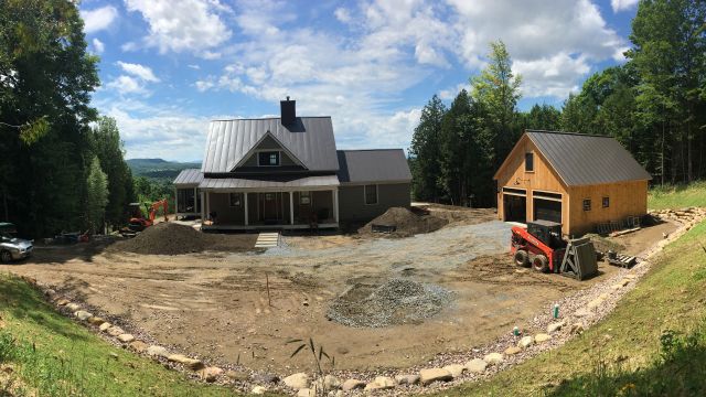 We first met with our clients when the foundation hole had just been excavated on a steeply sloping lot half way up the side of a cherished local mountain.